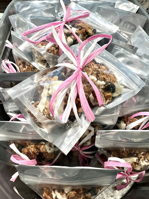 We make our granola seasonally but often have small batches for sale at Jasper Flowers & Gifts. We are always willing to make custom batches for showers, weddings, parties, clubs, groups, or just for personal orders. Contact us for more info.